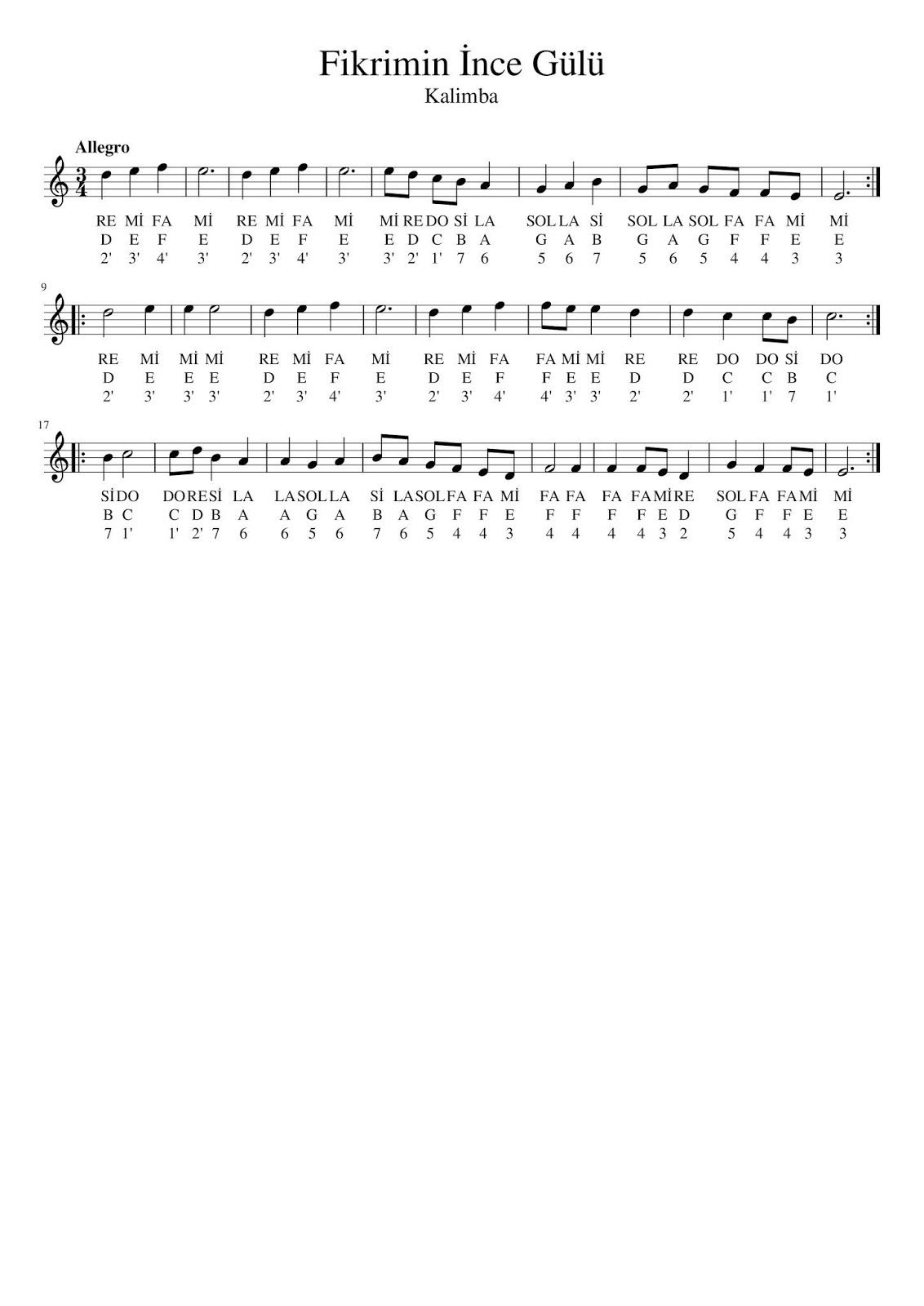 fikrimin ince gulu keman notalari