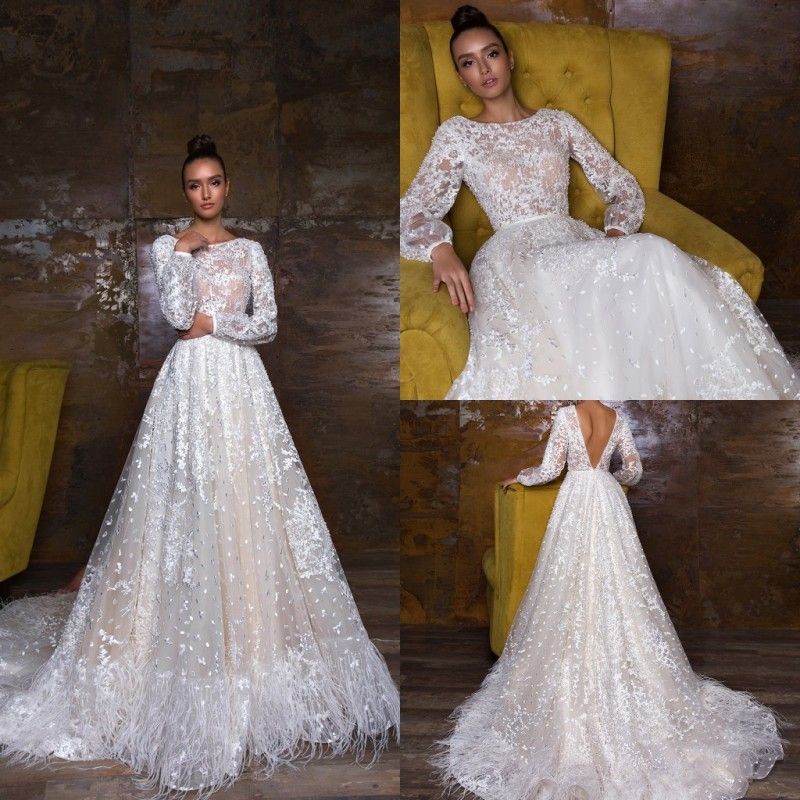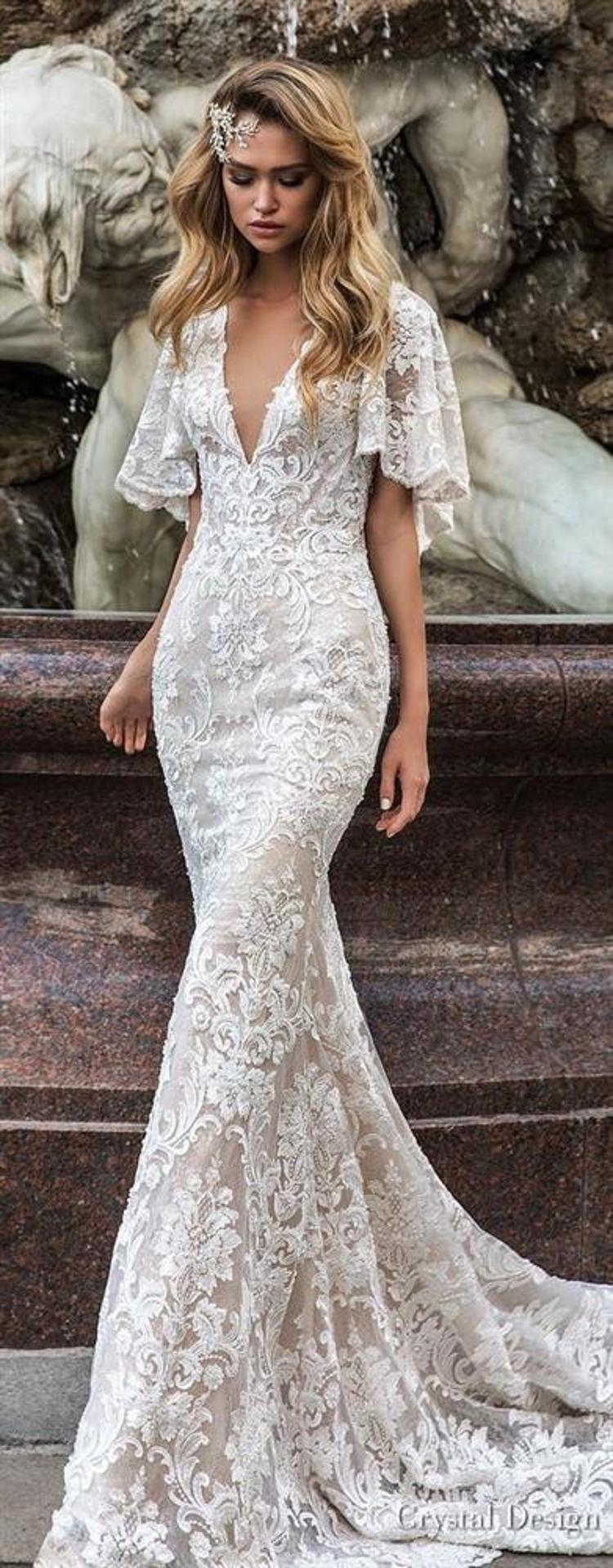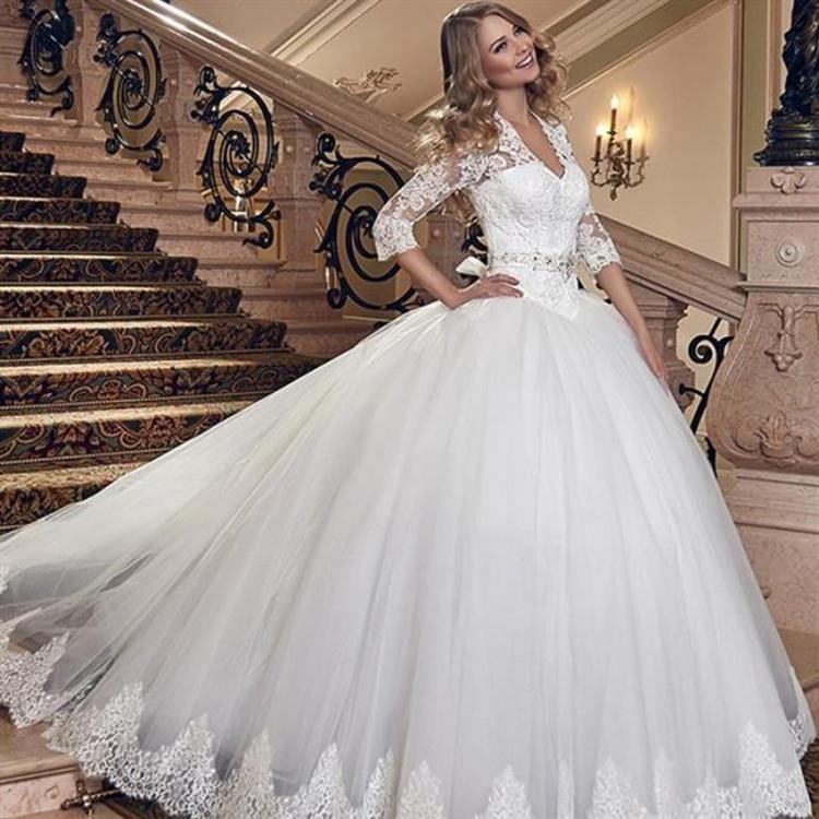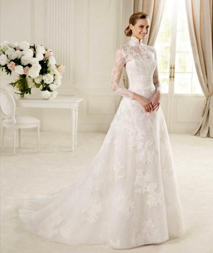 uzun kollu v yaka gelinlik