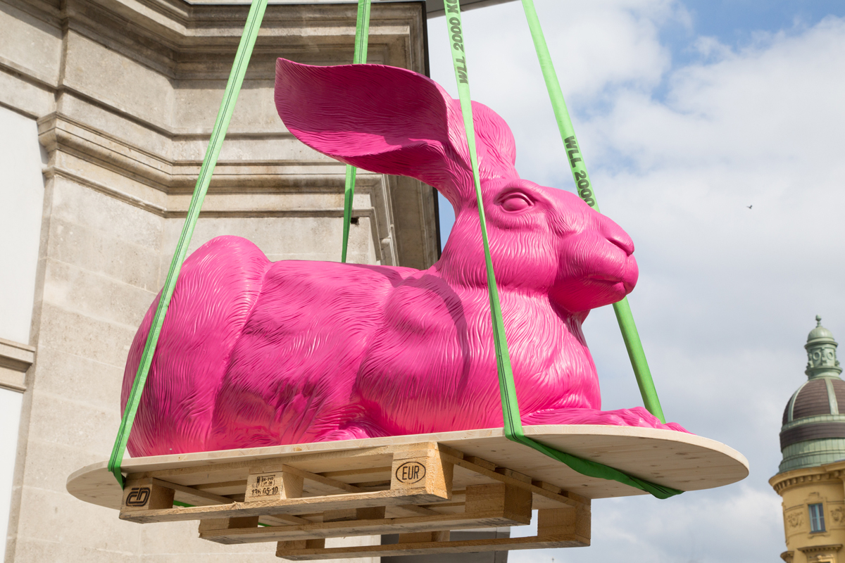 pink bunny sculpture near state opera in vienna editorial image image of culture ottmar 63579495